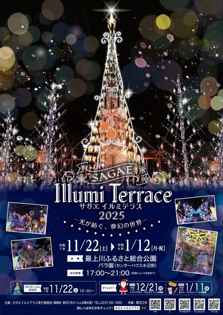 2025. 11/22(土)~2026. 1/12(月祝) 「さがえイルミテラス」 今年初開催の「さがえイルミテラス2025」 音楽と光が織りなす幻想的な”光の庭園”が寒河江の冬を彩ります。 20